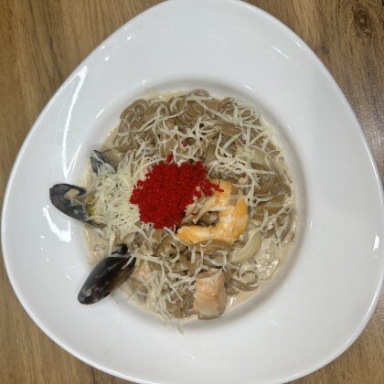 Соба/Удон с морепродуктами в сливочном соусе