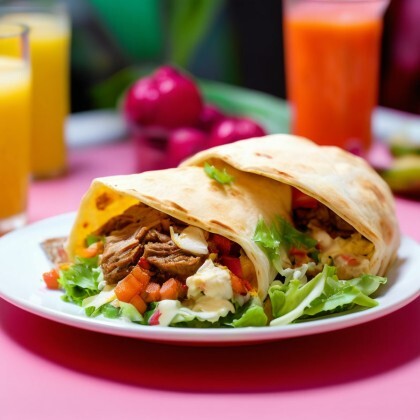 Сочная шаурма с мясом, свежими овощами и ароматным соусом, приготовленная по традиционному алтайскому рецепту.