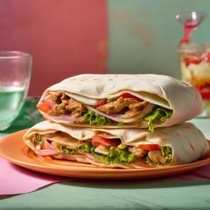 Сочная курица, сладкий ананас, хрустящие огурцы и свежая капуста в тёплой лепёшке. Идеальный выбор для перекуса или обеда.